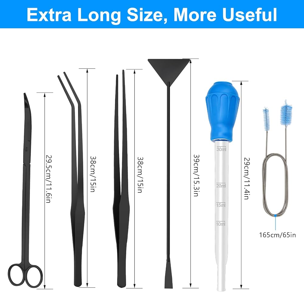 Il design antiscivolo del manico lo rende più facile da usare. Il nostro servizio: se hai domande sui nostri kit aquascape per acquari, speriamo che tu ci contatti prima e risolveremo il tuo problema entro 24 ore. Spazzole di pulizia Testine di 2 dimensioni, abbastanza lunghe per pulire il tubo. Kit di strumenti Aquascape 6 in 1: kit di strumenti per acquario, tra cui 1 paio di forbici curve da 29,5 cm; 1 pinzetta dritta da 38 cm, 1 pinzetta curva da 38 cm, 1 spatola per sabbia da 39 cm, 1 contagocce grande in plastica da 29 cm, 1 pezzo 1655 Acquario cm/65 pollici spazzola per la pulizia dei Cassetta degli attrezzi per acquario : pinzette dritte, pinzette curve, forbici dritte, forbici curve, spatole per substrato. Attrezzi per acquario 5 in 1 in acciaio inossidabile con custodia in pelle PVC, adatti per piante acquatiche in kit di avviamento Non danneggia la sezione trasversale della pianta. Antiruggine e anticorrosione: lo strumento Aquascape per piante acquatiche è realizzato in acciaio inossidabile di alta qualità con la più recente tecnologia di verniciatura spray, non sbiadisce facilmente, antiruggine e anticorrosione e durevole. Lunghe Strumenti Per L'aquascaping Del Serbatoio Dell'acquario Strumento Per Pinzette A Forbice Per Acquario Set Di Piante Acquatiche In Acciaio Inossidabile Per La Manutenzione Dell'acquario Forbici Acquario Descrizione prodotto Kit Aquascape per acquario in acciaio inox Antiruggine e anticorrosione. Multi funzioni: i kit di strumenti per acquari potrebbero aiutare a tagliare le piante e arredare il paesaggio dell'acquario con la pietra angolare e la sabbia, ma potrebbe anche pulire il serbatoio dell'acquario e rimuovere le cose sporche dal fondo dell'acquario. Dettagli degli strumenti di acquascaping delle piante acquatiche Forbici curve Aiuta a tagliare le parti di piante in eccesso e rendere l'acquario più bello. Grande contagocce di plastica Per la pulizia dei residui di pesce, cambio dell'acqua del serbatoio dei pesci. Spatola di sabbia Arredamento paesaggio acquario con pietra angolare, sabbia. Arredare il paesaggio dell'acquario con pietra angolare, sabbia. Dettagli degli strumenti di acquascaping delle piante acquatiche Pinzette curve Pulisci le piante, le erbacce e rimuovi i residui.