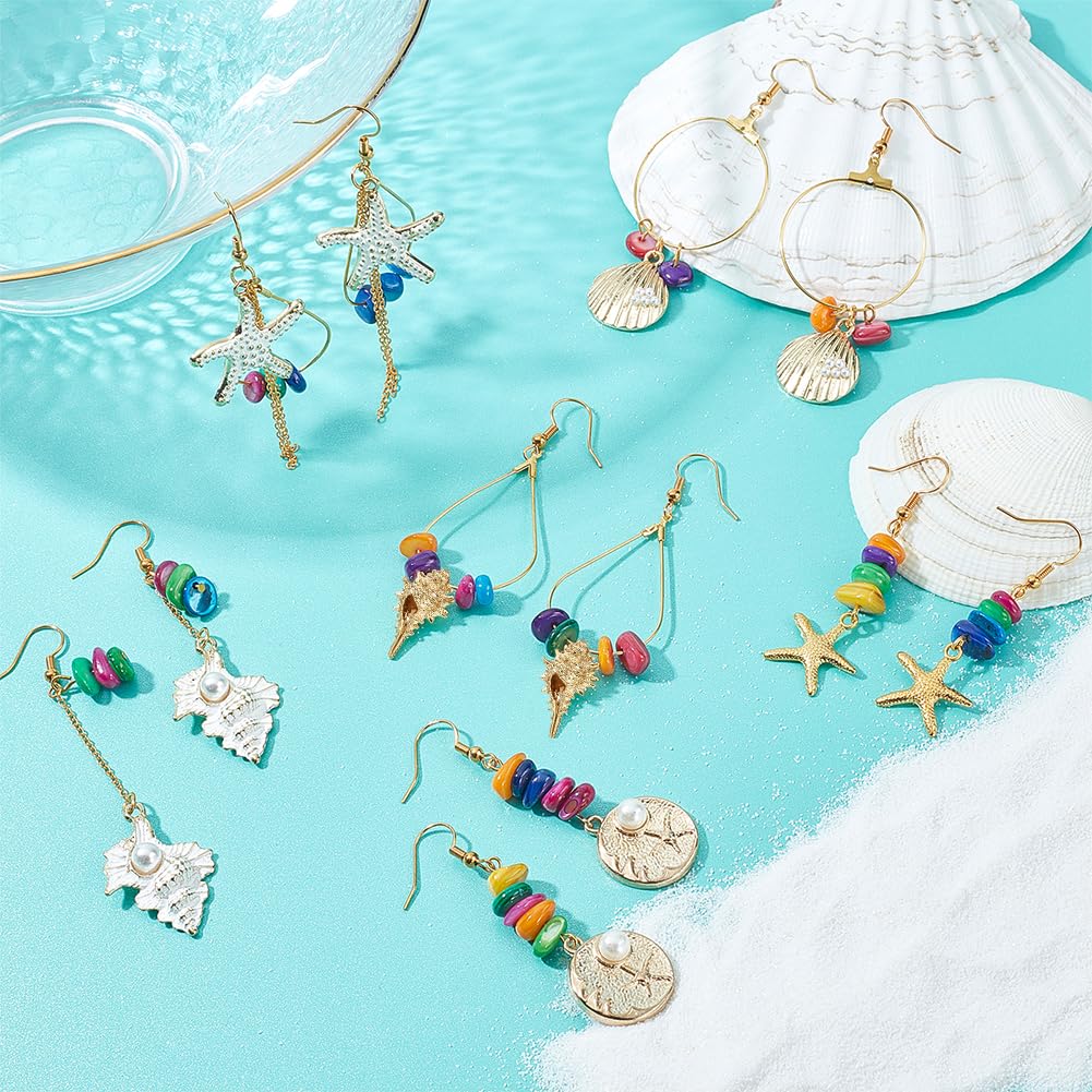 SUNNYCLUE 1 Scatola Fai-da-Te 10 Paia Di Orecchini Conchiglie