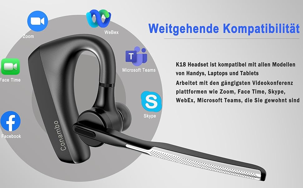 In caso di problemi con il prodotto, è possibile contattare i tecnici appropriati tramite il sito ufficiale di Conambo per risolverlo. Assicurati di provare tutte le dimensioni EarGel offerte fino a trovare la dimensione che ti offre la migliore combinazione di comfort e qualità del suono. Conambo Business - Cuffie Bluetooth K18 Connessione simultanea a due dispositivi Collegare il primo dispositivo; tenere premuto l'MFB per 5s fino a quando l'auricolare non passa alla modalità di accoppiamento. Confortevole e durevole: l'auricolare dal design ergonomico è leggero (0,63 oz/18 g) e può essere facilmente adattato all'orecchio destro o sinistro. Il materiale rivestito in nano è impermeabile e resistente alla polvere e soddisfa la norma IP54 (Nota: I dispositivi utilizzati devono essere dotati di tecnologia atpX HD) Verificata da Amazon Le cuffie Bluetooth Conambo Business K18 si sono collegate al programma di ispezione del prodotto Trasparenza di Amazon per garantire che i prodotti consegnati ai consumatori siano ispezionati e autentici. Auricolari Bluetooth Cellulare Auriculares Bluetooth CVC8.0 Con Cancelación De Ruido, Micrófono Doble, Conambo Inalámbrico Headset User Manual Con gli auricolari EarGel della giusta dimensione, i tappi per le orecchie sigillano il condotto uditivo, in modo da avere meno segnali audio e un'esperienza audio più piena. Goditi le conversazioni HD su Zoom, Face Time, Skype, WebEx, Microsoft Teams come ti serve. L'indicatore delle cuffie lampeggia alternativamente rosso e blu; metti il tuo secondo dispositivo nella modalità di ricerca/scansione Bluetooth, seleziona K18. Quando sei connesso, avvia un messaggio vocale con il messaggio che il tuo auricolare è collegato e l'indicatore blu lampeggia una volta. Qualità del suono: per un comfort e una qualità del suono ottimali, la vestibilità dei tappi per le orecchie è fondamentale. Confortevole e durevole: l'auricolare dal design ergonomico è leggero (0,63 oz/18 g) e può essere facilmente adattato all'orecchio destro o sinistro.