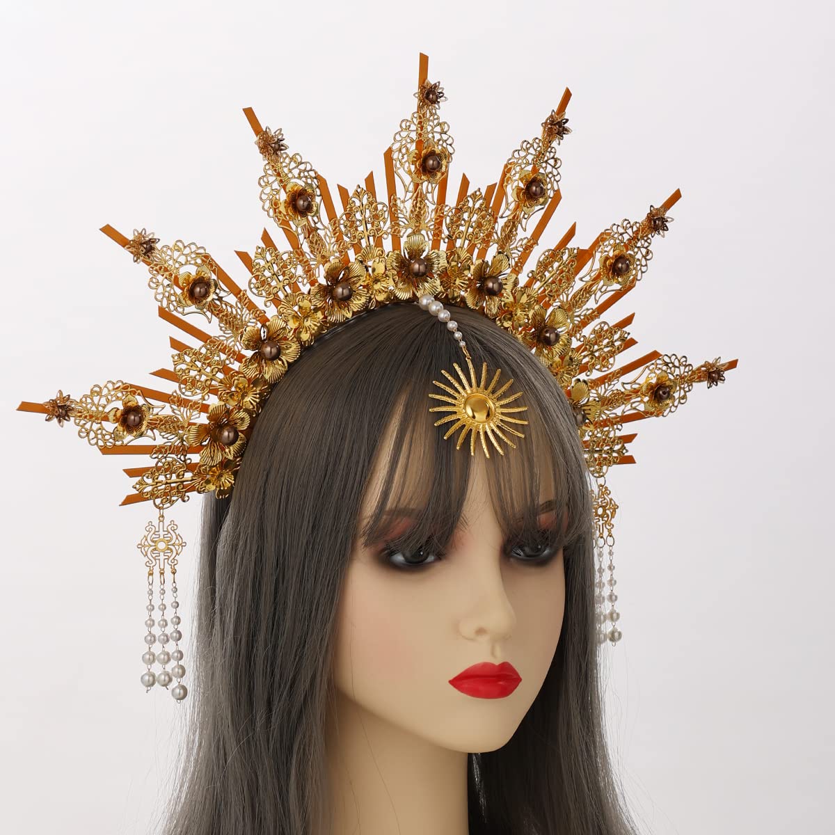 Zivyes Halo Crown Sunburst Spike Crown Headpiece Mary Headband Women's Halloween Costume ❤Il cerchietto aureola è adatto per Halloween, ballo, concorso, festa cosplay, ballo di fine anno, quinceanera, scatto di strada, festa a tema, fidanzamento, fotografia, ritorno a casa, festa retrò Cocktail, festa serale, Natale, ecc. ❤Confezione: 1pc copricapo aureola fatto a mano per le donne eleganti, che è un elemento necessario per la festa.❤Materiale: Lega. Cura dell'indumento: utilizzare un panno pulito per rimuovere la polvere ❤Leggero e facile da indossare. Corona Regina Fantherin Women's Mary Halo Crown Headband Zip Tie Halo Halo Infinite Cura dell'indumento: Utilizzare un panno pulito per eliminare la polvere