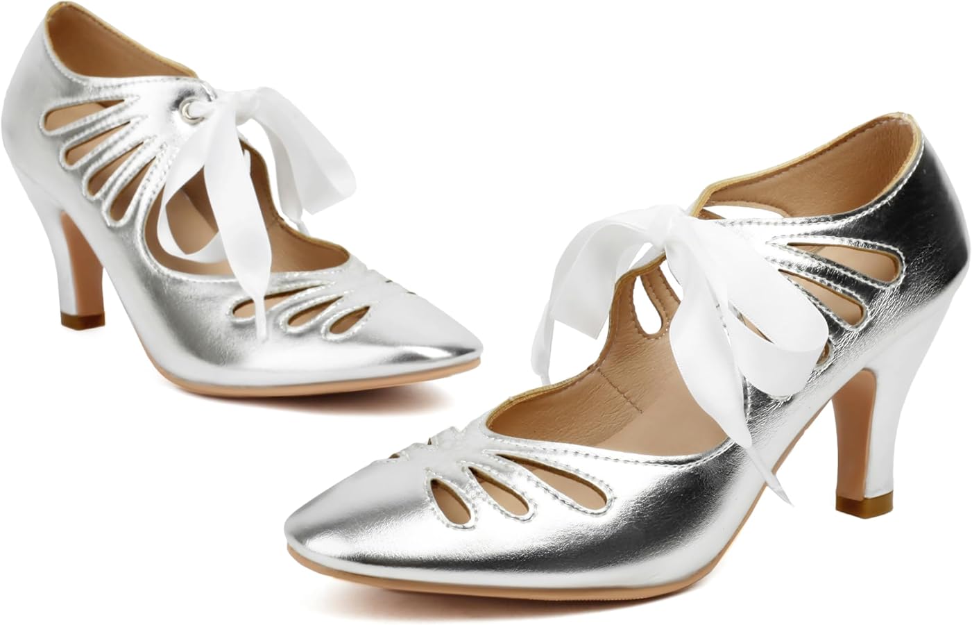 Elerhythm Women's Mary Jane Vintage Heels With Bow Gatsby 1950s Pumps