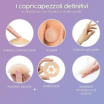 Design Invisibile - Questi copri capezzoli adesivi sono di colore naturale della pelle e possono coprire efficacemente i capezzoli. I copricapezzoli leggeri possono soddisfare le tue esigenze in viaggi d'affari, viaggi e attività all'aperto. Reggiseno Adesivo 2-12 Pz/scatola Copricapezzoli In Silicone Da Donna Copri Capezzoli Adesivi Lingerie da donna YHZMY 2 Paia Copricapezzoli, Copricapezzoli di Silicone, Nipple Cover Invisibili, Copricapezzolo, Adesivi Copricapezzoli in Silicone, Comodi, Riutilizzabili, Copriseno per 9,59 € 0 I copricapezzoli sono impermeabili, possono essere utilizzati più volte e rimangono appiccicosi. Possono adattarsi bene al seno a lungo e non cadere, prevenendo i danni causati dalle vibrazioni e dall'attrito durante l'attività intensa. Ideali per balli, feste, sport e vita quotidiana. Materiale Delicato Sulla Pelle - Questi copricapezzoli donna sono realizzati in silicone per uso medico, sicuro, morbido e resistente al sudore. Abbina perfettamente magliette, top trasparenti, vestiti e costumi da bagno. Occasione Applicabile - Questi copricapezzoli in silicone per capezzoli sono adatti per abiti scollati, abiti sottoveste e abiti da sposa, ecc. Il design del bordo assottigliato e l'aspetto liscio senza contorni imbarazzanti. Le sue caratteristiche di bassa sensibilità sono molto adatte a diversi tipi di pelle. Specifiche: Materiale: silicone Forma: Rotonda Colore: Colore nudo Dimensioni: 7,7 cm / 3 pollici di diametroCome Indossare: 1. Pulisci e asciuga il seno. 2. Staccare la pellicola di supporto. 3. Coprire l'area del capezzolo e premere leggermente la copertura del capezzolo per 10 secondi. I copricapezzoli sono adatti a molte occasioni formali e casual.