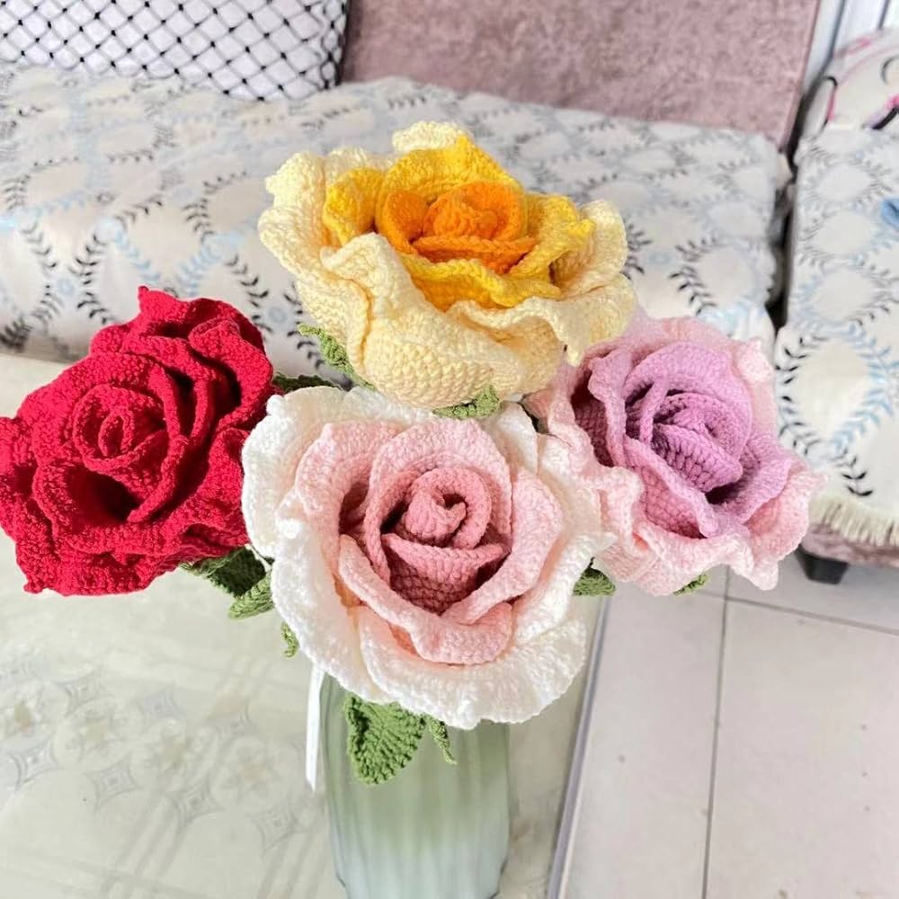 Kit Per Bouquet Di Rose – Coperta Fatta A Mano All'uncinetto Per La Decorazione Della Casa, Ideale Per La Festa Della Mamma E Compleanni, Confezione Finita O Fai Da Te Disponibile